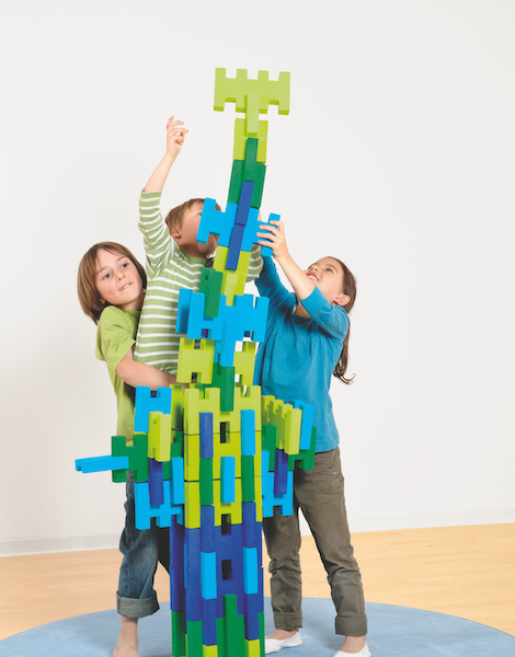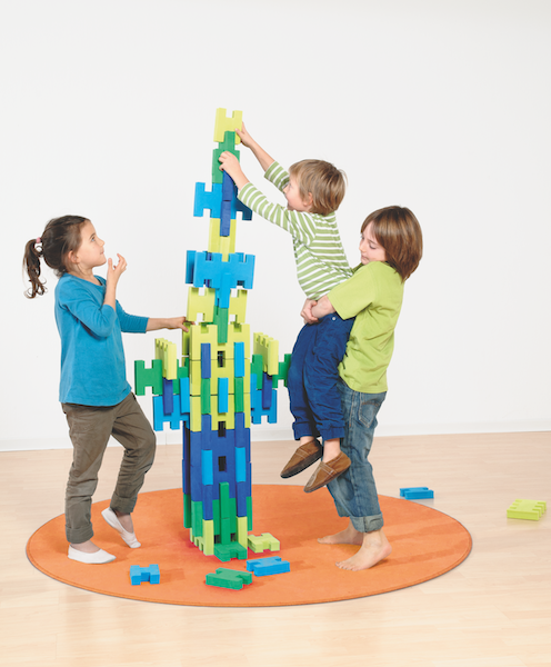 By plugging together the Dusybricks, children are able to construct large and stable buildings.