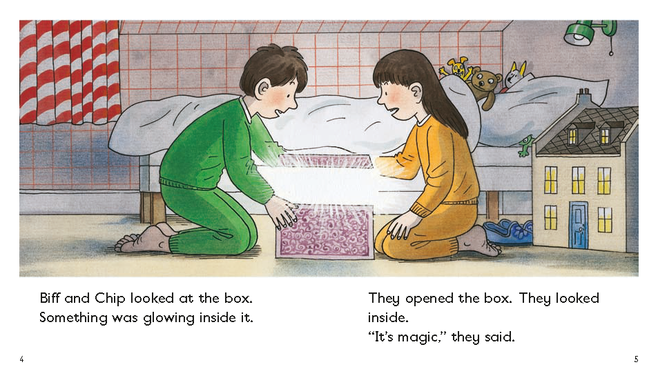 The Level 5 Biff, Chip and Kipper Stories provide humorous storylines to engage and motivate children. The popular characters and familiar settings are brought to life by Roderick Hunt and Alex Brychta. The stories are unchanged from the previous edition but the cover notes have been updated to support adults in sharing the story with the child.